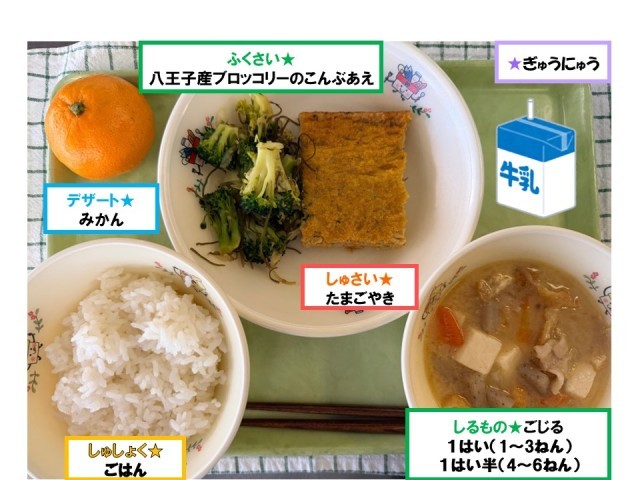 今日の給食では、今が旬の「八王子産ブロッコリー」をいただきました!