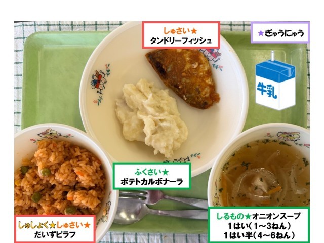 今日の給食では「タンドリーフィッシュ」を提供しました!