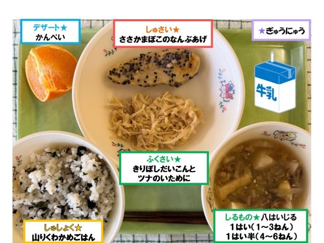 今日の給食では、東北地方の料理や特産品を食べて震災について学びました!