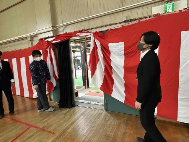 卒業式に向けての練習は始まっていますが、紅白幕をつけるとより卒業式に向けての気持ちが高まってきます。