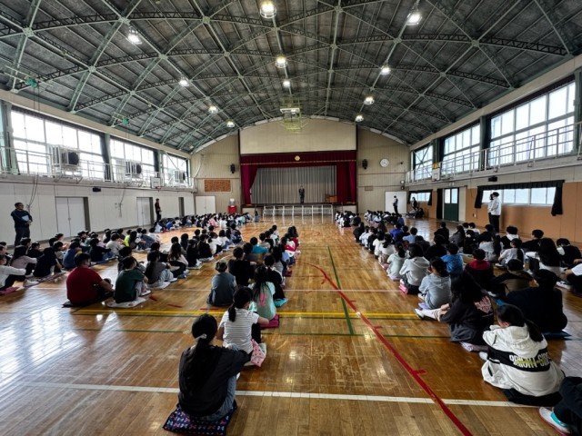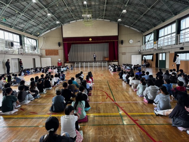 2~6年生の児童に校長先生から「できることを一生懸命がんばる大切さ」についてお話がありました。