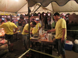 叶谷町会 夏祭り 公開日 2016/07/16 更新日 2016/07/17 校長室 7月16日(土)叶谷のお祭りに、住吉神社にお邪魔しました。 例年よりも遅い時間に行ったので、ものすごい人と熱気でした。 東小の子供たちも、卒業生達たちもたくさん参加していました。 PTAおやじの会の皆さんも汗を流していらっしゃいました。(写真上) 櫓の上では、本校児童が素晴らしいバチさばきとリズム感で、太鼓をたたいていました。(写真下) (校長:平田 英一郎) いいね(0)