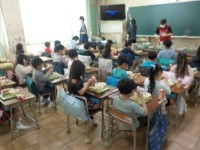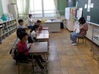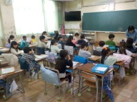 ガイドさんからお話を聞いた後、ホールで映像を見ながら世界の子どもたちについて考えました。最後に元八王子小学校のユニセフ募金を担当の方にお渡ししました。