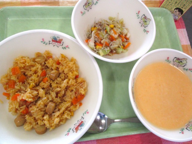 野菜のポタージュには、ベーコンとにんじん、たまねぎ、じゃがいもを使っています。