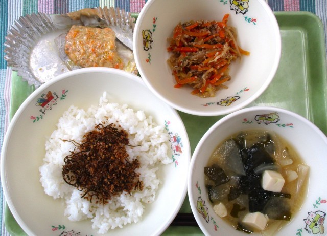 給食では、上恩方町出身の中村雨紅先生が作詞した童謡「夕焼小焼」をイメージした「夕焼小焼やき」をつくりました。
