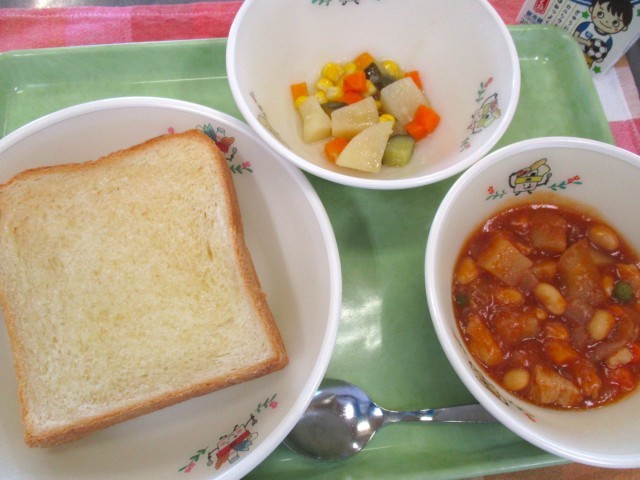 にんじんやきゅうり、じゃがいもを角切りにして、手作りドレッシングと和えました。