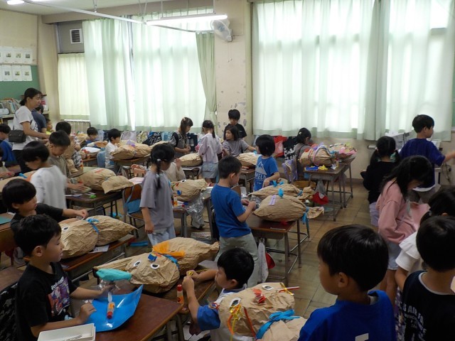 1年生の学習の様子です。1組は図書の読み聞かせ、2組は図工です。