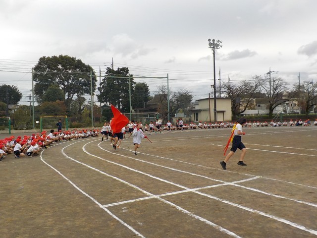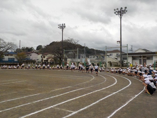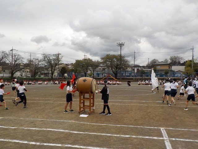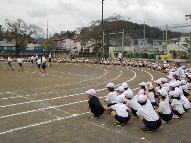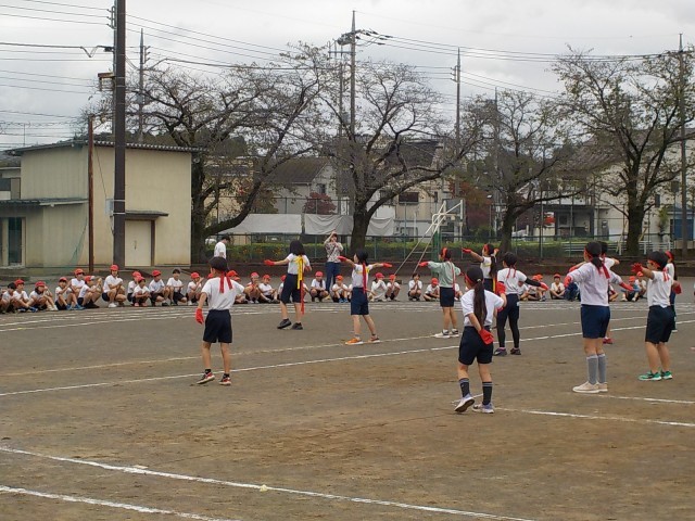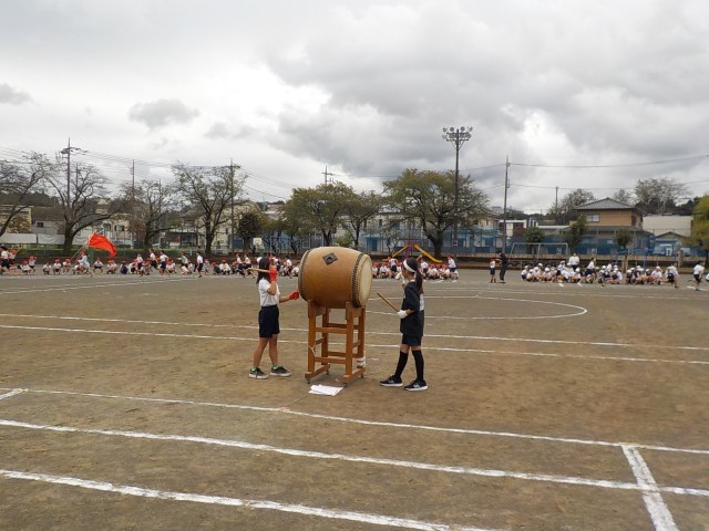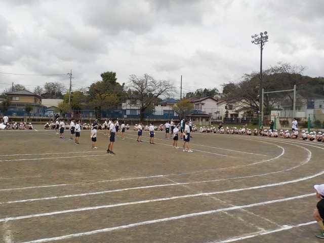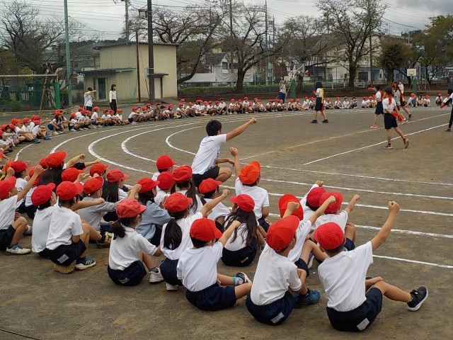 はじめに応援の練習です。1回目の全校練習より大きな声で応援できました。