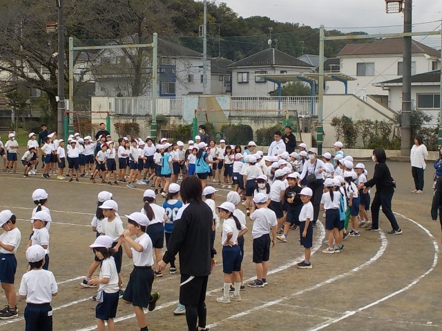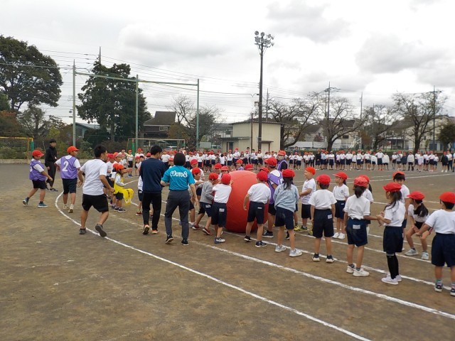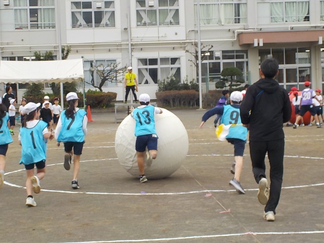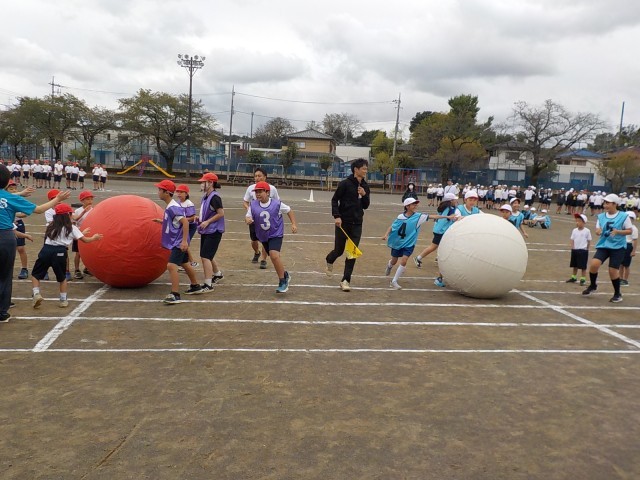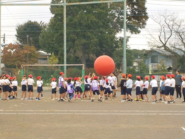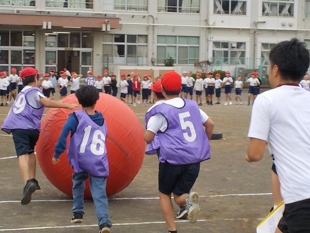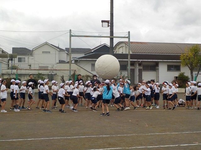 後半は全校競技の大玉送りの練習です。初めてやる競技ですが、コツが少しわかったようです。