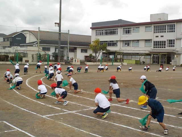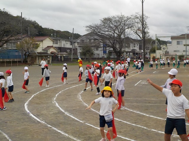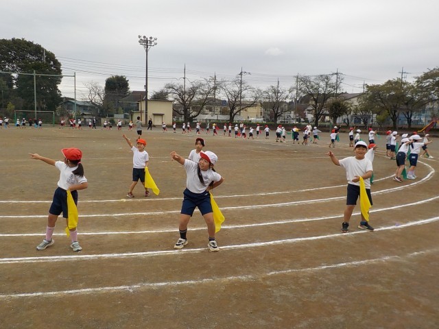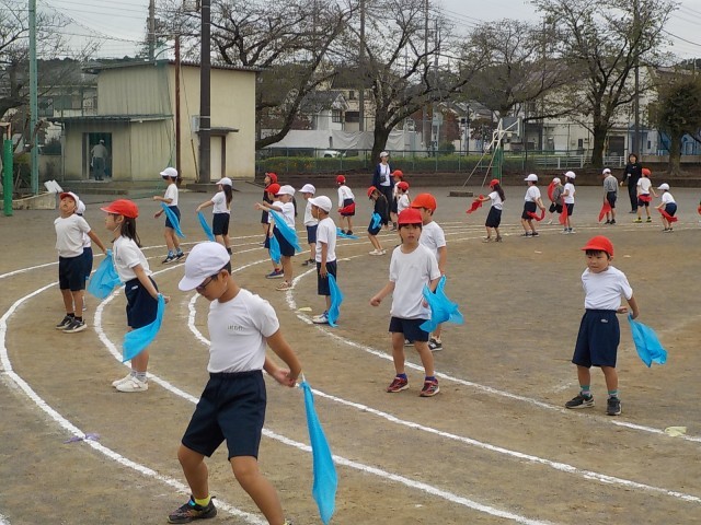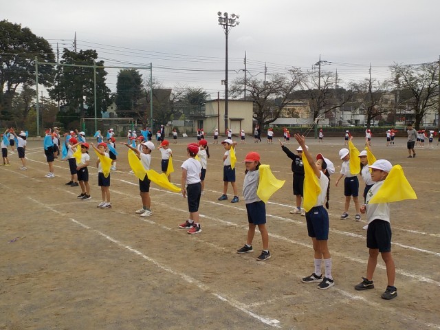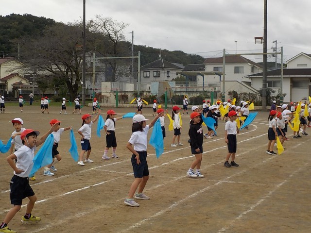 1・2年生の表現の練習風景です。笑顔で踊っています。