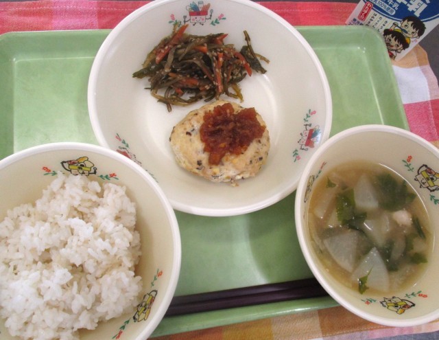 豆腐ハンバーグの上には、こちらも手作りの大根おろしソースをかけてあります。