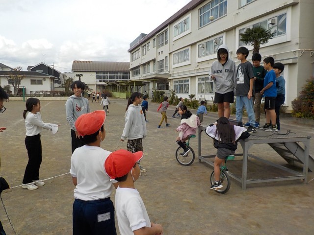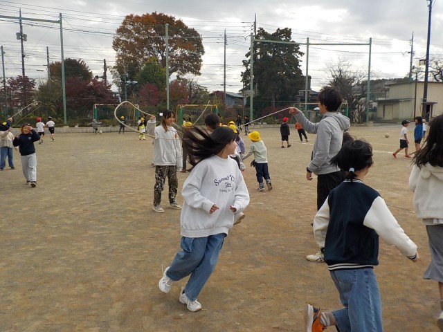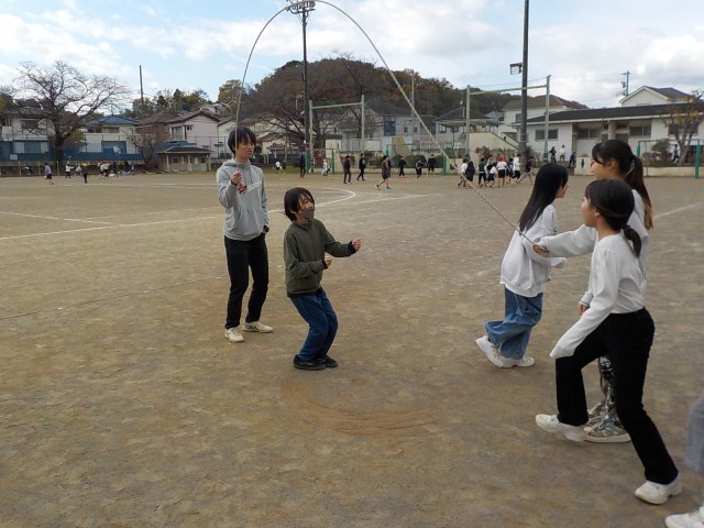 体育委員会主催の大なわ大会2日目の様子です。連続回数の記録を伸ばして、みんな喜んでいました。明日に備えて1年生も練習しています。