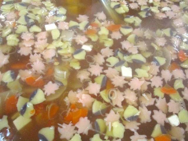 写真1:秋のお吸いものに入っているかまぼこ3種類(栗、もみじ、いちょう)