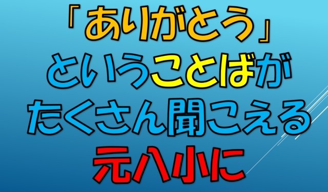 今日の朝会はオンラインで行いました。最初に「ありがとう」という言葉について話しました。「あたりまえ」だと思っていることは、実は「あたりまえ」ではない。そしてそのことに対して素直に「ありがとう」と言える元八っ子になってほしいと思っています。