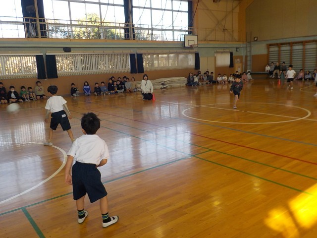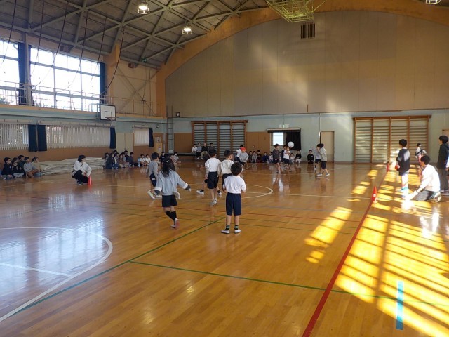 今日のドッジボール大会は1年生同士のエキジビションマッチでした。応援の子どもたちもたくさん来てくれました!!