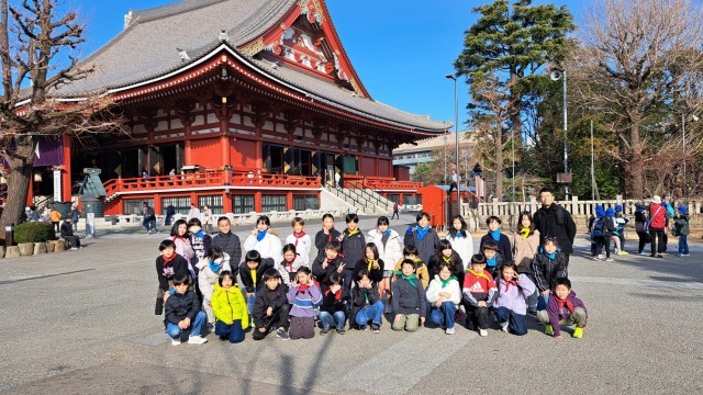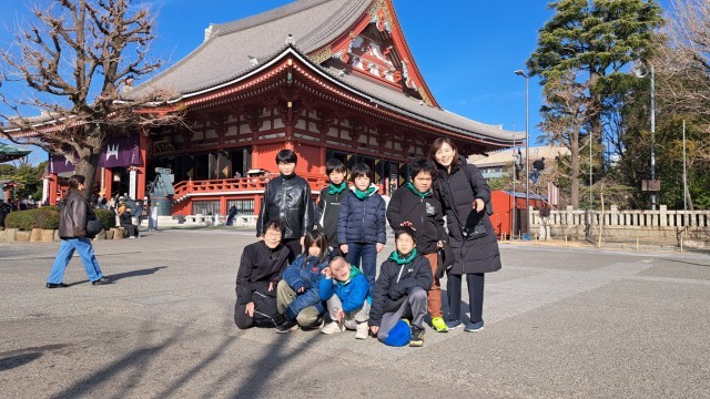 予定通り浅草に到着しました。まずは浅草寺前で集合写真を撮りました。