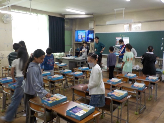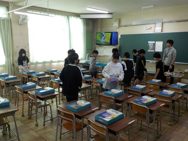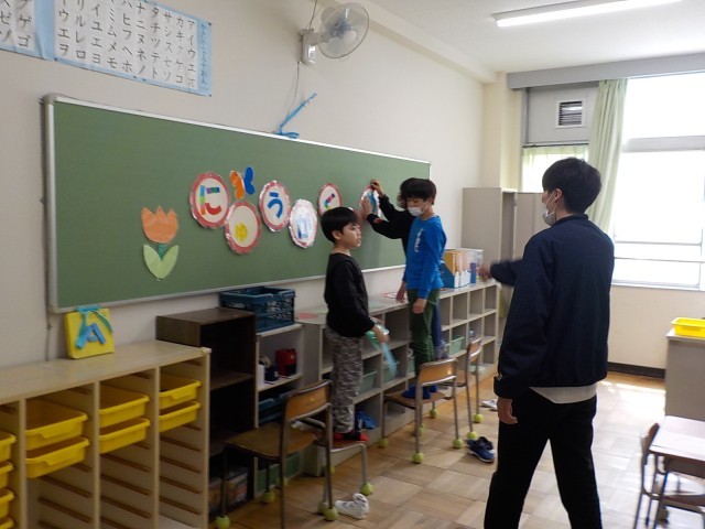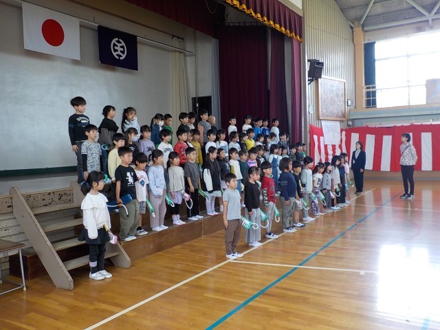 明日の入学式のために、3時間目に2年生が出し物の練習をしました。また、4時間目には6年生が体育館や教室、昇降口などに分かれて、様々な準備をしてくれました。