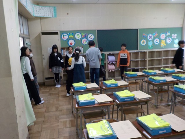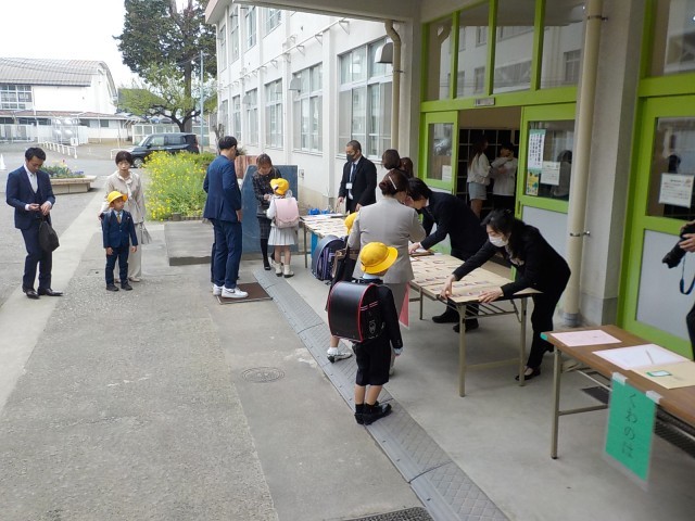 受付、昇降口や教室でのお世話など、6年生が新入生に優しく声をかけてくれていました。