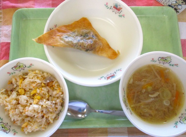 今日は、最初の給食なので配膳しやすい+食べ慣れている献立を選びました。
