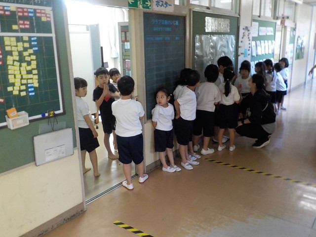 1年生は入学して初めて体操着に着替えました。みんな上手に着替え、計測することができました。