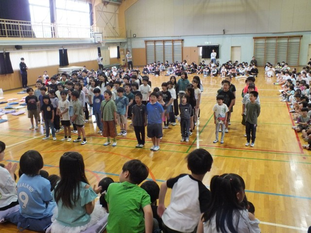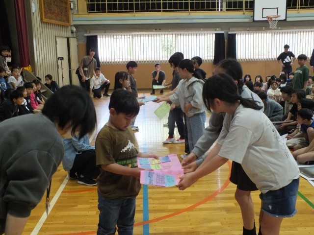 4年生は歌(勇気100%)、5年生はクイズと寄せ書きのプレゼントでした。