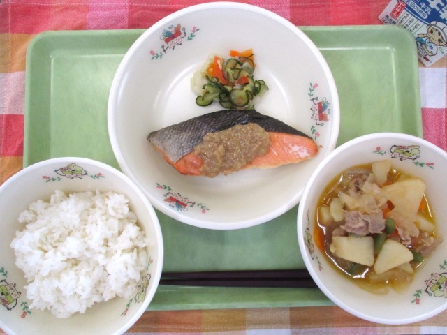 今日の給食では、いただいた「だし塩」を使って、浅漬けをつくりました。