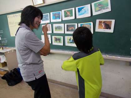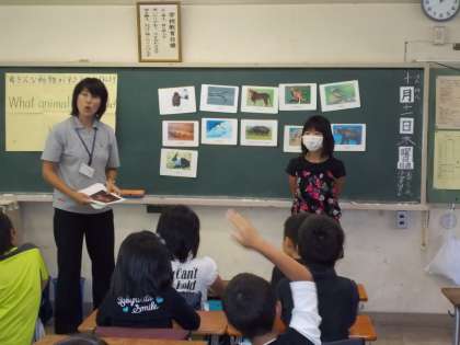 今月は講師の先生に来ていただき、英語の活動を進めています。What animal do you like ?