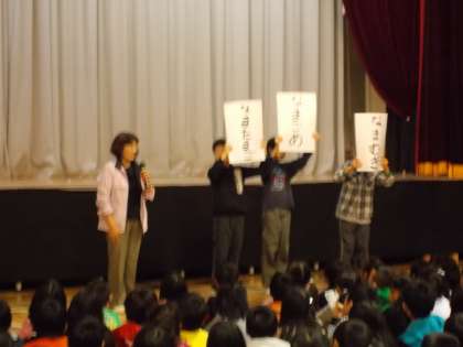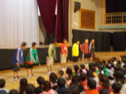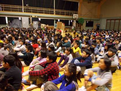 朝の時間を使って、幕間の過ごし方についての練習です。特に児童鑑賞日、6年生の幕間係り児童が、活動します。大道具の出し入れや演技児童の入れ替え時の全校児童の過ごし方、静かになるときの合図などの確認を行っています。この他にも多くの場面で6年生が活躍してくれています。そして後片付けは5年生へと、毎年引き継がれていきます。