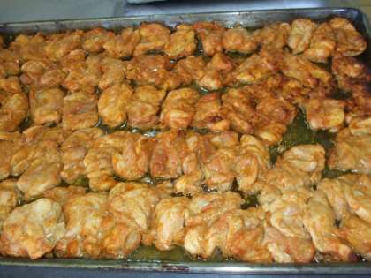 タンドリーチキンは、カレー粉。ケチャップ・ヨーグルトなどを使い、しばらく鶏肉をつけてから焼きました。