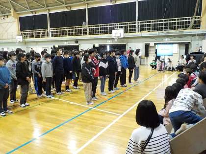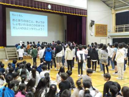 6年生は校歌の歌詞と1年生と一緒に遊ぶというプレゼントでした。