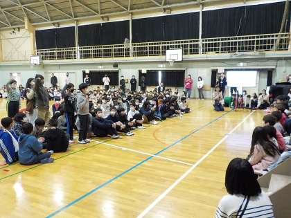 5年生は元八小クイズと桜の木のメッセージカードのプレゼント