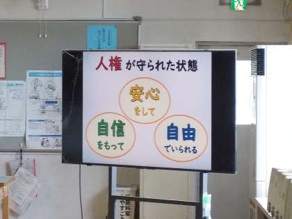 一人ひとりが「安心」して「自信」をもって「自由」でいられる(人権が守られている)ためにも、どのように行動したらよいか、発言したらよいか、真剣に考えながら話を聞くことができました。