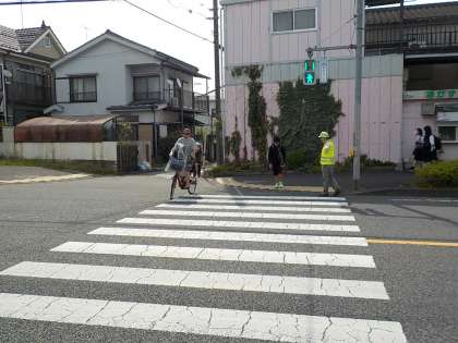 JA前の横断歩道では、スクールガードリーダーの方が見守りをしてくださっていました。