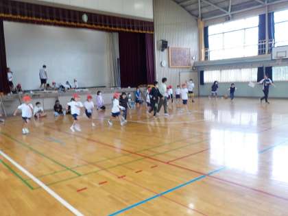 6年生が1年生の20mシャトルランをお手伝いしてくれています。