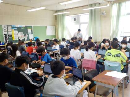 6年1組は社会、6年2組は国語に取り組んでいました。