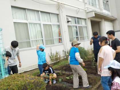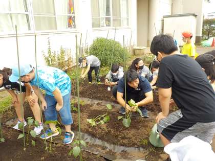 緑化ボランティアの皆さんが、畑を準備してくださっていたので、スムーズに植えることができました。