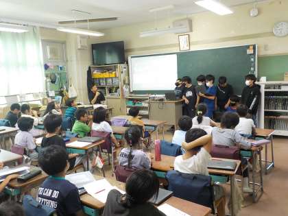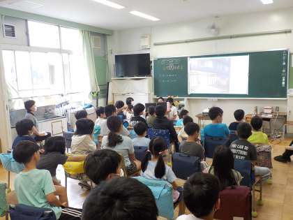 6年生が日光移動教室の学習のまとめとして、1〜5年生とくわのは学級にスライドを使って発表しました。