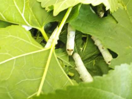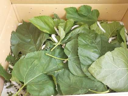 毎日桑の葉をたくさん食べて、だいぶ大きくなってきました。