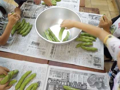 明日の給食に「ゆでそら豆」として提供される予定です。