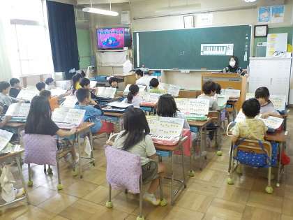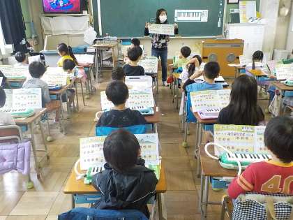 1年生の音楽の学習では、鍵盤ハーモニカの練習に一生懸命取り組んでいました。