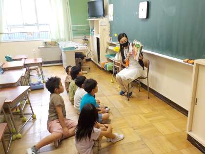 今日の朝の時間は、ブッキーさんによる読み聞かせでした。