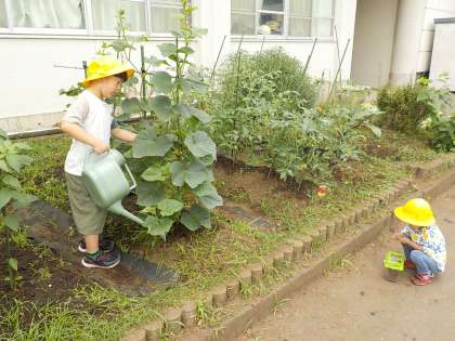 くわのは1組の子どもたちが畑や花壇に水やりをしてくれていました。