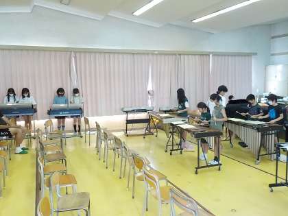 5年生が1年生に向けて音楽で学習した合奏や歌を披露しました。