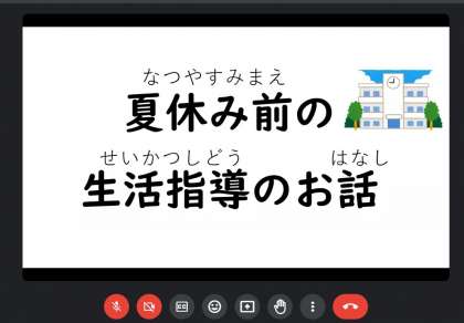 今日の朝会は、夏休み前の生活指導についてオンラインで行いました。