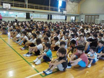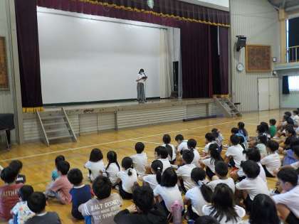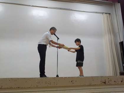 今日は、教育実習生の紹介、市内のバトミントン大会で優秀な成績を修めた児童の表彰、代表委員会児童からのお話でした。