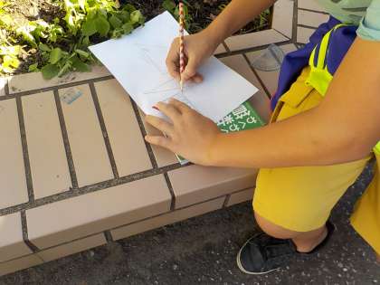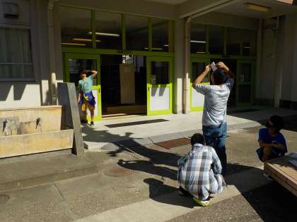 図形の拡大と縮小の学習で、校舎の高さや木の高さを調べる数学的活動に取り組んでいました。