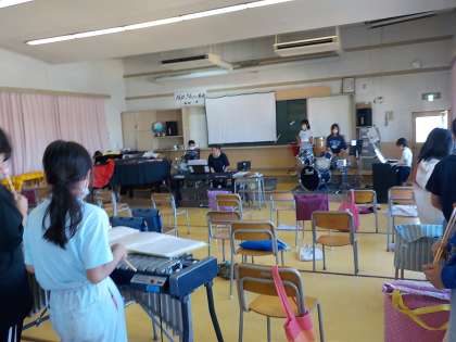 音楽室では、音楽クラブが演奏の練習をしていました。
