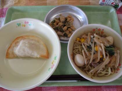 麺とスープを合わせるとすぐに伸びてしまうので、それぞれ別の食缶によそって教室で盛り付けます。