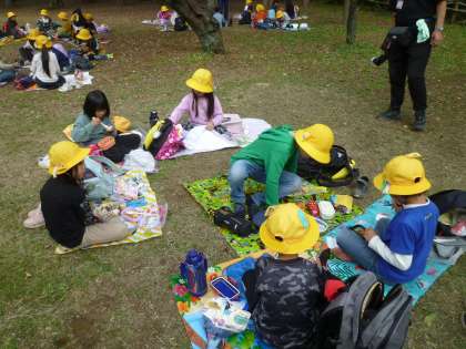 動物の見学・観察が終わり、お楽しみのお弁当タイムです。