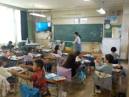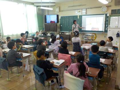 1組は図工、2組は国語を学習していました。